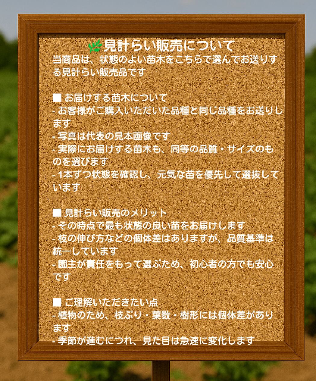 掲載写真は苗木の一例です。同品質の苗木を園主が責任を持って選び、お客様にお届けいたします。